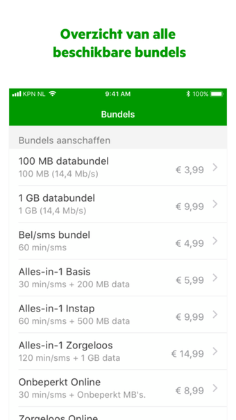 KPN Prepaid vereist iOS 12.1.2 of hoger. De huidige versie van het programma is 2.3.5, en je kunt het alleen in het Nederlands uitvoeren.